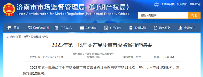 济南市2023年第一批皂类产品质量市级监督抽查结果