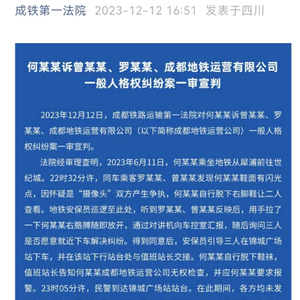 12月12日,成铁第一法院公布了“成都地铁被诬陷偷拍案”的一审判决,法院判决认为诬陷何某某(男)偷拍的两女子罗某某、曾某某,以及成都地铁运营公司都不构成一般人格权的侵权,所以何某某要求相关方道歉、赔偿50000元的诉讼请求,法院不予支持。