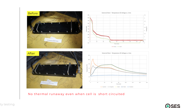 安全方面,100Ah锂金属电芯通过了第三方测试机构的过充、针刺、外短路和热稳定测试,并获得UN38.3认证,标志着SES在高能量密度电芯的安全方面更进一步。