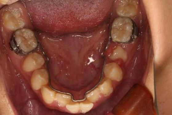 舌弓保持替牙间隙并隐形矫正排齐牙齿。