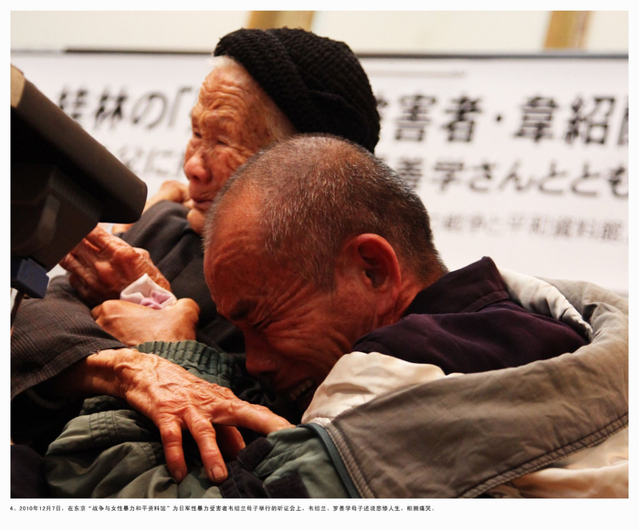 所以2010年12月,日本东京“女性国际战犯法庭”审判活动10周年,是一个民间法庭,关注中日历史遗留问题多年的旅日中国电视人朱弘带着他们,去递交“请愿状”。我和太太给他们掏了2万元做路费去日本,那是他们母子第一次也是唯一一次出国。当韦绍兰做控诉听证时,罗善学突然情绪失控,离开座位在台上向母亲长跪不起,直到工作人员将他搀回座位。