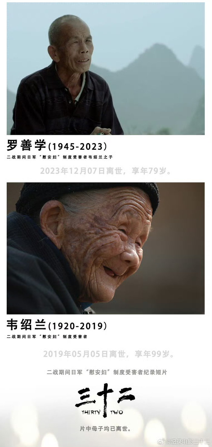 这一幕后来被导演郭柯记录在了纪录片《三十二》中。此后,郭柯又推出纪录片《二十二》,票房高达1.7亿元,创造了国内院线放映纪录片的票房神话。两部作品也将日军“慰安妇”制度下的受害群体,呈现在更广大公众的面前。