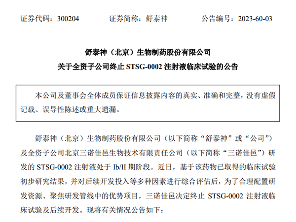 连亏三年,乙肝新药又遭终止,舒泰神1.5亿元研发投入“打水漂”