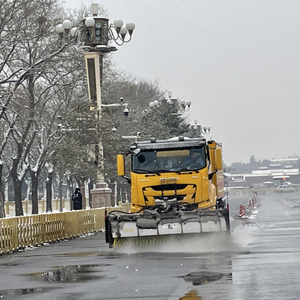刘晓旭介绍,朝阳环卫中心第四清洁车辆场肩负着朝阳全域的机械作业和大部分人工作业任务。今天一开始下雪,第四清洁车辆场就安排了融雪水车,在道路、桥区、匝道等位置预洒融雪液,随后,北五环辅路、林萃路、北辰东路、北辰西路等地出动了多功能除雪车。