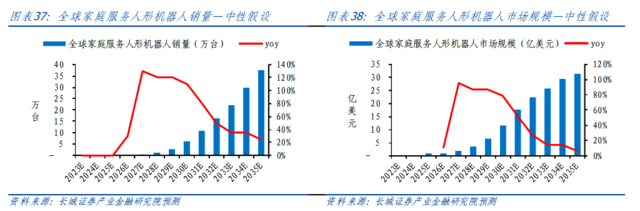从家庭服务方面来看,长城证券认为,起步期规模可能小于制造业,中性假设下,预计2035年全球人形机器人家庭服务领域销量为37万台,到2035年全球规模在中性/观假设下为31亿美元,2025-2035年CAGR为43.4%: