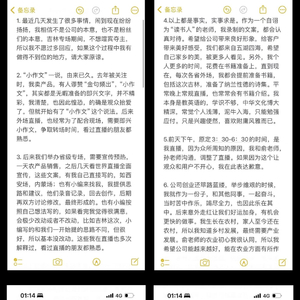 “所谓的‘小作文’其实都是无暇准备的即兴文字,并不精彩。”董宇辉表示,由于此前卖产品被夸赞金句频出,就有了“小作文”的说法,后来外场直播,也常为了配合现场,需要即兴小作文,争取转场时间,“最近几天发生了很多事,闹得纷纷扬扬,相信不是公司的本意,也不是粉丝的本意。”