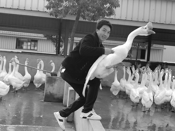 江卫军从鹅群里抓出“鹅王”讲述致富经。
