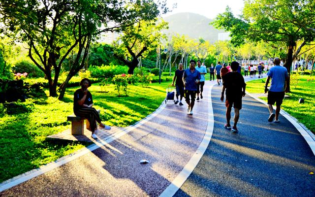 11月16日,海南三亚,早晨的白鹭公园,市民正在进行体育锻炼。图/IC photo