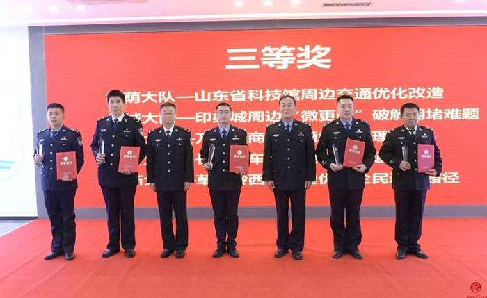 获得三等奖的作品是:高新大队—草山岭西路周边|隔离不隔民心,优化企民通行路径;天桥大队—长途汽车站周边|交通综合治理改善交通环境;历下大队—万象城周边|商圈综合治理,实现交通品质体验再提升;历城大队—印象城周边|“微更新”破解拥堵、“路畅达”直抵民心;槐荫大队—山东省科技馆周边|预判堵点、提前治理,协同配合共治成效明显。