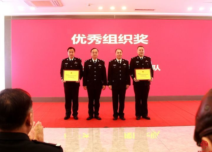 随后由支队党委副书记、政委黄强同志宣读支队表彰决定,参会领导分别为获奖单位颁奖。