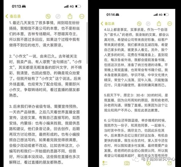 这次“小作文”事件的起因是东方甄选12月10日收官的“吉林之行”,据了解,三天的直播销售总额达2.76亿元,创历史新高,董宇辉在直播里念的文案也是赢得了网友的赞赏。然而,因为“视频的宣传文案到底出自谁之手”这一问题,董宇辉粉丝、东方甄选抖音号运营、董宇辉本人、东方甄选公司陷入了多方论战。