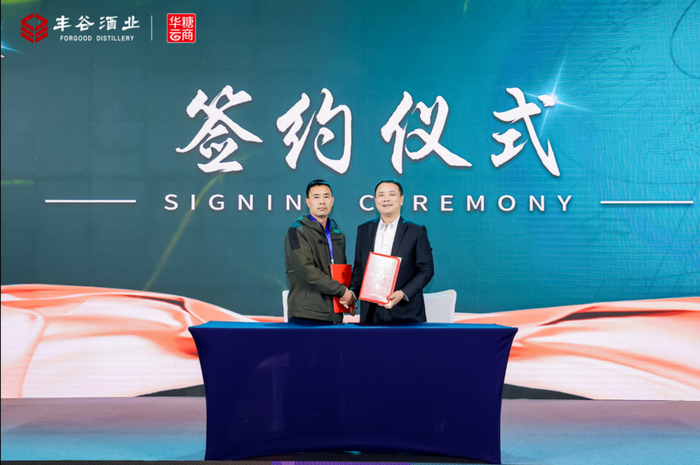 四川丰谷酒业销售公司山东分公司总经理董瑞勇和意向客户现场签订合作意向书。
