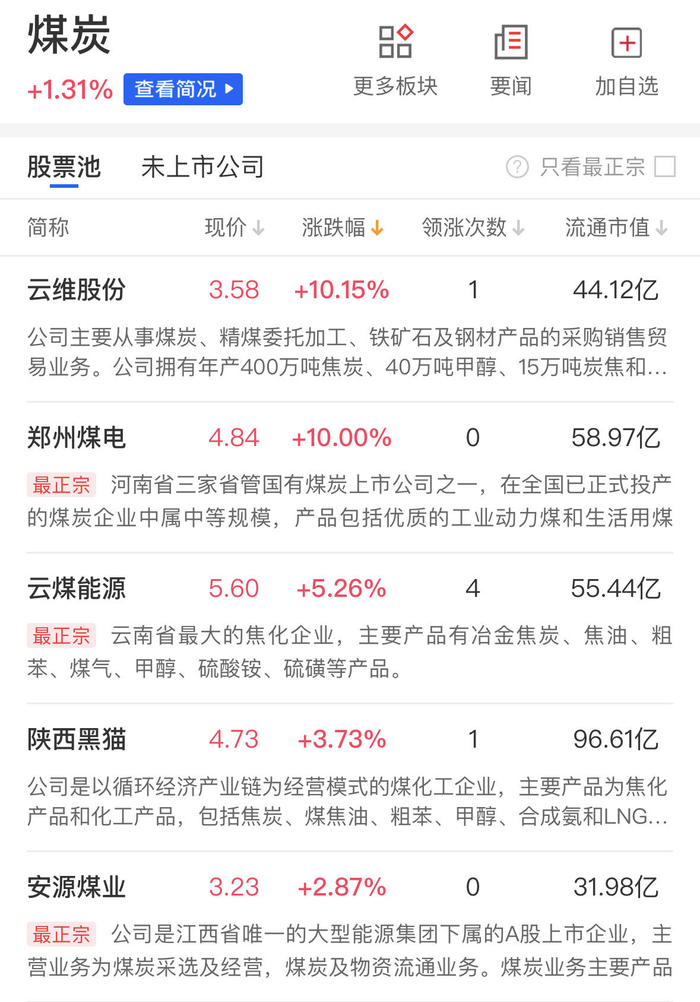 煤炭、供热板块同样在盘中异动拉升异动拉升,郑州煤电涨停,京能热力回封涨停,大连热电、杭州热电、云煤能源、安源煤业等涨幅靠前。