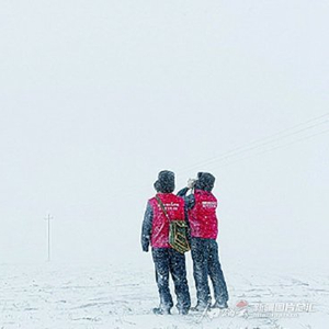 12月13日,在吉木乃县,室外最低气温达到零下30摄氏度,积雪最深处达到40厘米,伴随着7级大风,2名国网新疆电力有限公司阿勒泰供电公司员工对35千伏吉喀线进行特殊巡视。