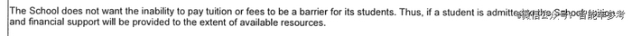 另外,如果学生被录取但是无力支付学费或其他费用,学校将在可用资源的范围内给学生提供学费和经济支持。