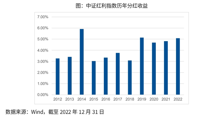 分红的确是股票投资中比较稳定的收益来源,然而2%的股息对于部分投资者而言可能仍然偏低,优选高股息公司的红利策略吸引力相对更强。以A股高股息的代表中证红利指数为例,最近几年的分红收益均保持在5%左右,成为投资者收益来源的压舱石。