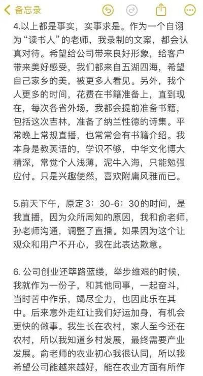 俞敏洪在回应中指出,东方甄选CEO孙东旭在对问题进行解释时,提及董宇辉薪酬的行为不恰当,自己作为董事长负有领导责任,也向董宇辉表达了歉意。“小孙做事情,年轻有冲劲,但不够圆润。所以相信大家理解。”