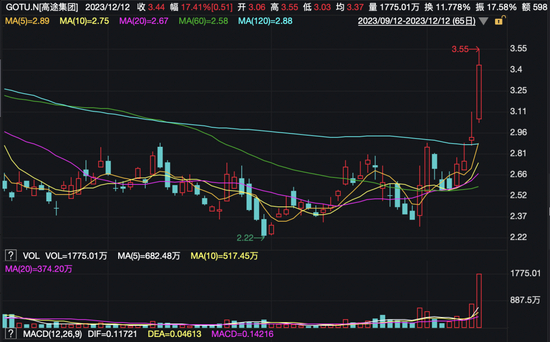 两家公司股价走势也和粉丝数量类似,12月11日,东方甄选股价大跌超7%;12月12日,在港股恒指涨超1%、文化传媒板块上涨4.58%的情形下,东方甄选盘中多次翻绿,以“0”涨幅收盘;今日,东方甄选股价再次大幅走低,截至发稿跌超7%。较12月10日收盘市值相比,3天时间蒸发了48亿港元(约合人民币44亿元)。与之相反,高途佳品背后的高途集团12月11日大涨超6%,盘中一度涨超12%;12月12日,高途集团继续大涨,盘中一度涨超20%,截至收盘涨17.41%,两日累计涨近25%。