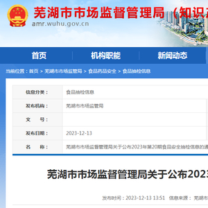 芜湖市市场监督管理局关于公布2023年第20期食品安全抽检信息的通告