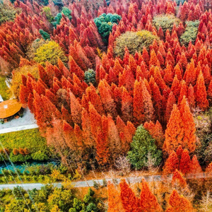 初冬,成都市都江堰朱家湾林盘披上了彩装。黑石河从朱家湾的林间穿过,河畔两岸水杉树变成了红色,与周围的植物红绿黄相间,大地像打翻的调色板一样色彩瑰丽,将川西乡村林盘的美景展露无遗。