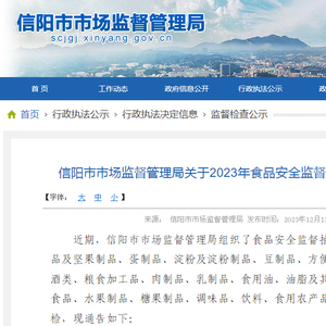 【河南】信阳市市场监督管理局关于2023年食品安全监督抽检情况的通告(第十五期)