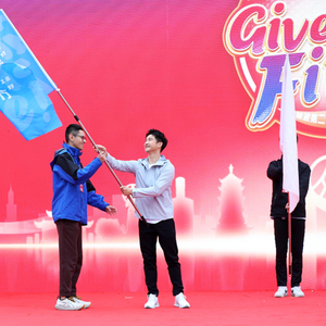奥运冠军、五粮液12·18 超级粉丝节体验官田亮为粉丝队伍授旗