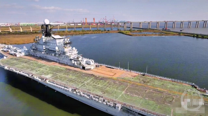 近日,在江苏省南通市旅游的方小姐(化名)在网上发布视频称:经过南通市苏通大桥时,发现曾经的海洋霸主之一——“明思克”号航母停在苏通大桥附近,现场无人施工,飞行甲板已经生锈。有网友说“2016年拉过来的,摆了7年没动静”。