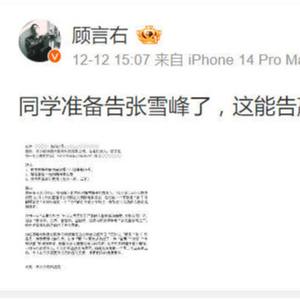 微博粉丝66余万的博主“顾言右”在12月12日,发布一篇准备状告网红考研名师张雪峰的“起诉书”。“起诉书”显示,原告作为一名文科生,将就张雪峰直播中“公开抨击文科都是服务业,总结成一个字就是‘舔’并解释就是‘爷我给你笑一个,这样的行为'"起诉。“顾言右”认为,张雪峰是对文科生群体的“公然的人格贬低和挑衅”。