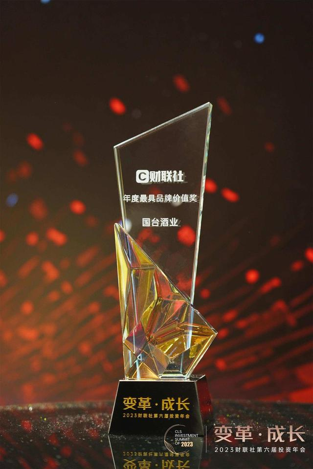 12月14日,由上海报业集团指导,财联社主办,科创板日报、鲸平台、蓝鲸财经协办的2023财联社第六届投资年会在上海盛大举行。活动上,凭借稳步增长的品牌价值、不断提升的品牌影响力,国台酒业集团获得了“年度最具价值品牌奖”。