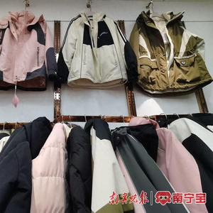 南宁和平商场一女装批发店内展示的冲锋衣款式。