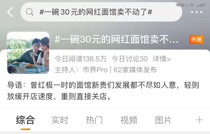 这两天,#一碗30元的网红面馆卖不动了#的话题登上微博热搜,引发不少网友共鸣。