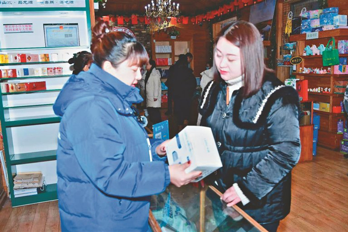 在北极村最北邮局内设立的移动营业厅为村民和游客提供服务。