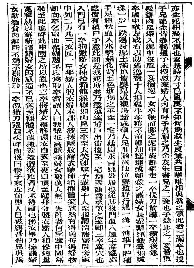 对生活在20世纪初的晚清时人来说,《扬州十日记》中的记载,已经是两个半世纪前的前尘旧事,讲述的是1645年初夏四月清军攻陷扬州时的那场惨绝人寰的大屠杀,这场屠杀的幸存者王秀楚,描述了他数日来死里逃生的所见所闻: