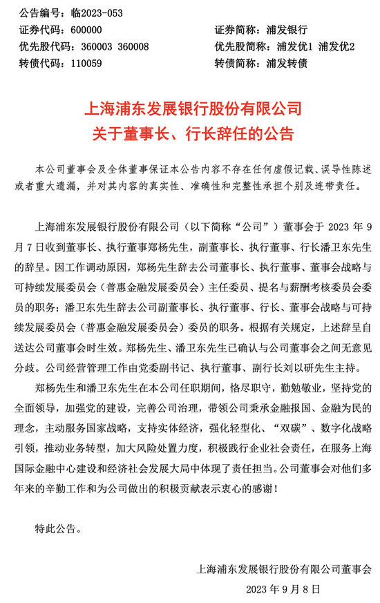 图片来源:浦发银行官方公告