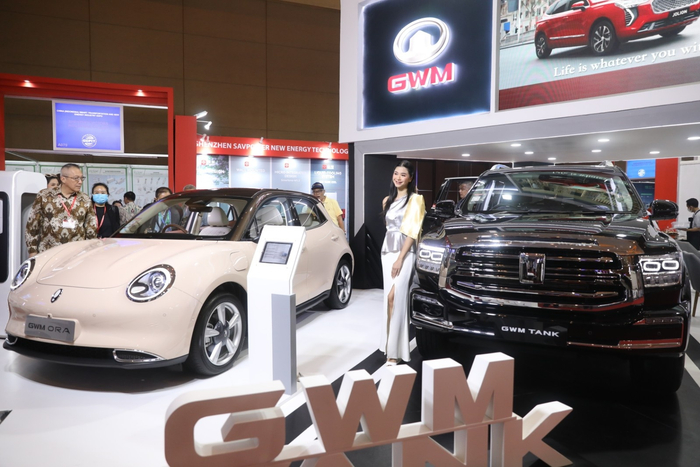 日前,中国(印尼)智慧交通及能源产业展览会开幕,来自中国的五菱、长城、东风、奇瑞等新能源汽车企业参展。图为长城汽车展位。(图片由CNSPHOTO提供)