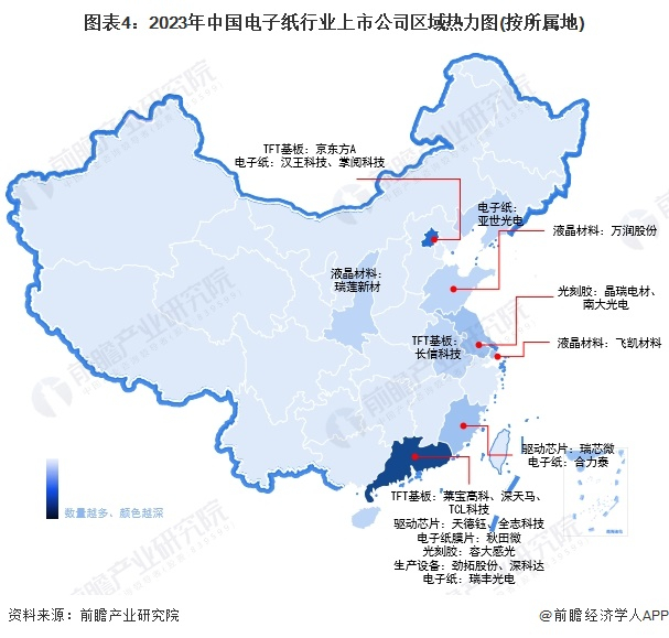 电子纸行业产业链区域热力地图:广东、江苏、安徽等省市分布较为集中