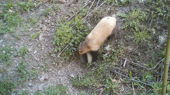 引迁工程的初始设计是把老栖息地的北面围起来,让它们只能往南方走。老地方断水断粮,新地方通过投喂食物、种植等方法给足食源,吸引狗獾一家老小逐渐过渡到新栖息地。通过监测视频可以看到,新栖息地上狗獾的粪便越来越多,足迹、食坑(挖取蚯蚓等食物留下的坑)等活动痕迹也很多,说明狗獾确实被吸引过来了。