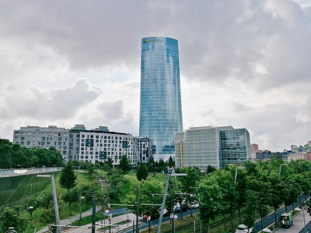 站在河岸边,总能望见毕尔巴鄂的制高点。与一般欧洲城市不同,毕尔巴鄂的制高点并不属于教堂,而是由塞萨尔·佩利设计的伊贝德罗拉塔,它为了纪念伊贝德罗拉电力公司成立十周年而建成,是巴斯克地区最高的摩天大楼,高165米,也是西班牙所有摩天办公大楼中最大的一座,面积达5万平方米。这样的高楼放在中国自然很不起眼,但在传统的欧洲,却堪称庞然大物,也见证着毕尔巴鄂的重建——它拔地而起的位置,同样属于废弃的前工业区。