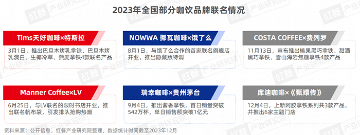 2023年,咖饮品牌走的是快节奏、特色鲜明、年轻化的营销思路,其中跨界联名这一方式在线上线下博得高关注度。