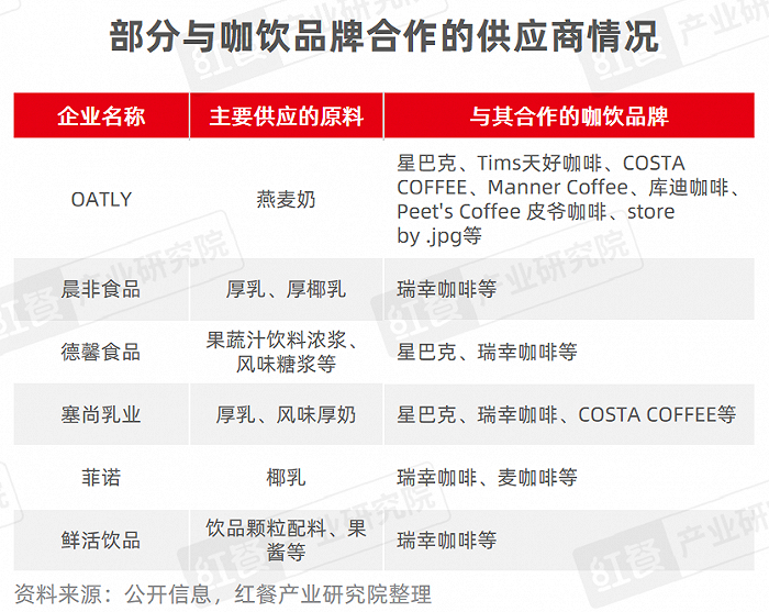 供应链企业的崛起满足了下游咖饮品牌的定制化需求,如瑞幸咖啡的爆品“酱香拿铁”,采用的是塞尚乳业的白酒风味厚奶;库迪咖啡的燕麦拿铁系列,采用的是OATLY为其定制生产的燕麦奶。