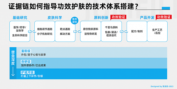 今年我们讲得非常多的,就是护肤品类的底层逻辑已经发生了切换,突破了原有的技术边界。今天的化妆品基础学科,已经完成了从精细化工,到了生命科学生物医药的转变。特别是功效护肤的竞争关键从配方前移到原料,产品要具备核心原料的差异化,再围绕该核心原料做包裹、透皮、递送、提升生命利用率的升级迭代等,理性的验证、临床数据、科学证据是关键,这背后因素当然是消费者关注和需求焦点的迁移带来的。