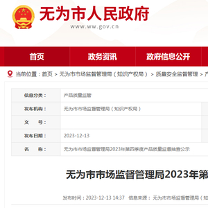 安徽省无为市市场监督管理局2023年第四季度产品质量监督抽查公示