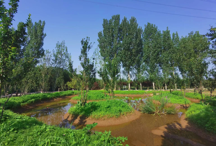 顺义区龙湾屯镇对镇内小北坞村104.8亩闲置地再次利用,结合平原造林工程,新种植常绿乔木白皮松、油松等350余株,落叶乔木银杏、元宝枫、金叶榆等1800余株,亚乔木山杏、山桃、碧桃等1900余株,灌木紫丁香、连翘700余株,地被紫花地丁、桔梗、马蔺等12000余平方米。在靠近村边的位置划出了游憩活动区,里面则是生态隔离区域。4米、2米、1.5米不同宽窄的步道在园区内交错纵横,为村民营造便捷舒适的公共绿色活动空间。