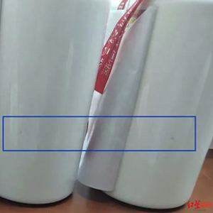 2,用强光手电灯从瓶身前后标之间空白处照射瓶体,尤其注重前后标的背面有无小黑点,要注意区分瓶体瑕疵点和黑点的区别。钻孔破坏了瓶身位置原有的纹理,打孔后无论填充什么材质,用强光照射瓶身,瓶身都会出现小黑点。