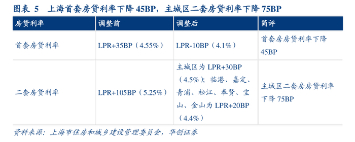 二是二套住房商业性个人住房贷款利率下限调整为不低于相应期限贷款市场报价利率(LPR)加30个基点,最低首付款比例调整为不低于50%。同时,为支持推进“五个新城”和南北转型重点区域高质量发展,促进产城融合、职住平衡,在自贸区临港新片区以及嘉定、青浦、松江、奉贤、宝山、金山6个行政区全域实行差异化政策,二套住房商业性个人住房贷款利率下限调整为不低于相应期限贷款市场报价利率(LPR)加20个基点,最低首付款比例调整为不低于40%。
