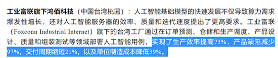 据了解,工业富联外部赋能的工厂,也入选了此次“灯塔工厂”名单,包括工业富联服务的广汽埃安广州工厂和中信特钢无锡工厂,成为工业富联外部赋能的第三座“灯塔工厂”。