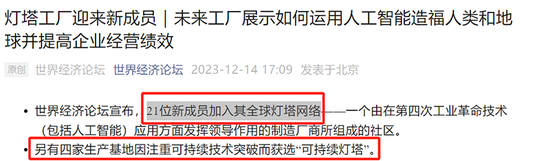 12月14日,世界经济论坛(WEF)公布最新一批“灯塔工厂”名单,新增21家新晋制造业“灯塔工厂”和4家“可持续灯塔”工厂。