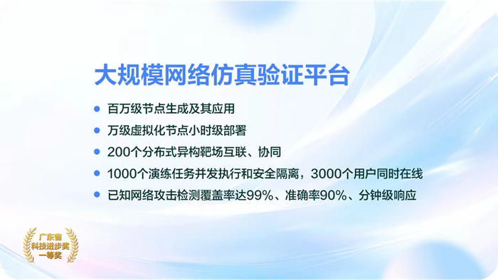 近日,紫光股份旗下新华三集团凭借产学研合作成果 ——“大规模网络仿真验证平台关键技术与系统”成功斩获广东省科技进步一等奖。该项目是致力于解决网络安全领域关键问题的创新工程,通过构建高度真实的网络环境,对各类网络安全技术进行仿真测试,为用户提供可靠的网络安全解决方案。