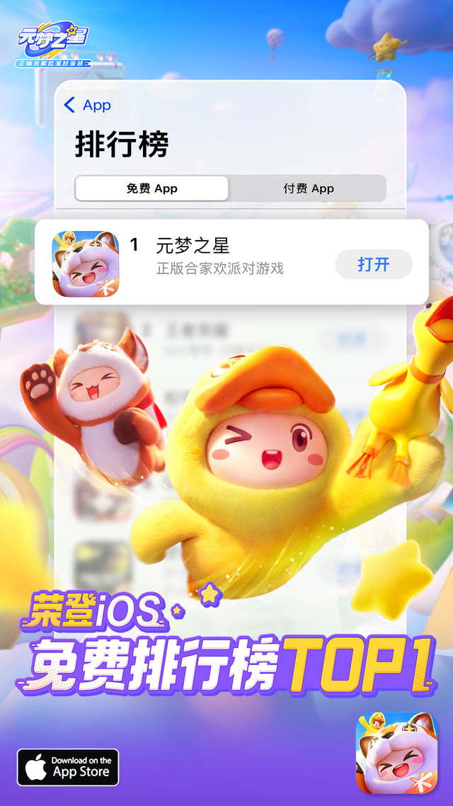 腾讯首款派对游戏《元梦之星》上线,90分钟登顶iOS免费总榜