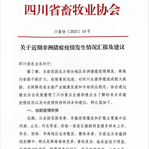 今日,四川省畜牧业协会一份《关于近期非洲猪瘟疫情发生情况汇报及建议》(川畜协[2023]10号)文件在养殖群内流传,引发业内讨论。“该份文件真实存在,目前已经提交四川省农业农村厅,但现在农业农村厅正在研判,尚未批复。”四川省畜牧业协会相关人士告诉财联社记者。